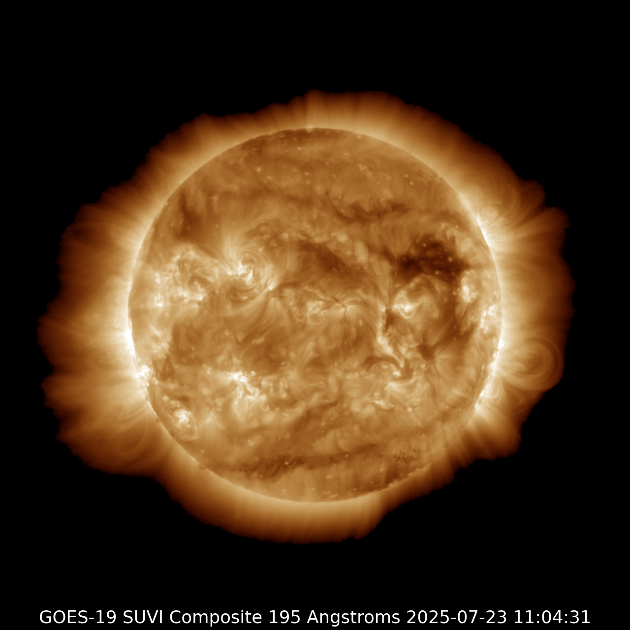 Fast solar wind from a coronal hole continues to flow past Earth, but it's gradually weakening. Solar wind speeds peaked near 789 km/s on July 17 and have since begun to ease. The resulting geomagnetic activity has quieted down, with only a slight chance of isolated active periods remaining, especially today (July 18).